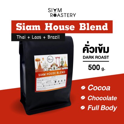 เมล็ดกาแฟคั่ว สยามเฮ้าส์เบลนด์ จากสูตรพิเศษ สำหรับคอกาแฟ Specialty ร้านกาแฟ คาเฟ่ เราใช้เมล็ดกาแฟจาก 3 ประเทศ ไทย ลาว บราซิล ผ่านการคั่วระดับเข้ม ทำให้ได้รสชาติที่หอม หนักแน่น นุ่ม ซับซ้อน | สามารถชงได้ทั้งกาแฟเย็น กาแฟนม กาแฟดำ