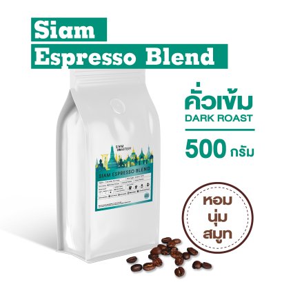 เมล็ดกาแฟคั่ว สยามเอสเปรสโซ่เบลนด์ จากสูตรการผสมผสานเมล็ดกาแฟอราบิก้า จาก 2 แหล่งของไทย ผ่านการคั่วระดับเข้ม ทำให้ได้รสชาติที่หอม นุ่ม สมูท | คุ้มค่า คุ้มราคา Best Seller สำหรับคอกาแฟที่ทานกาแฟประจำ