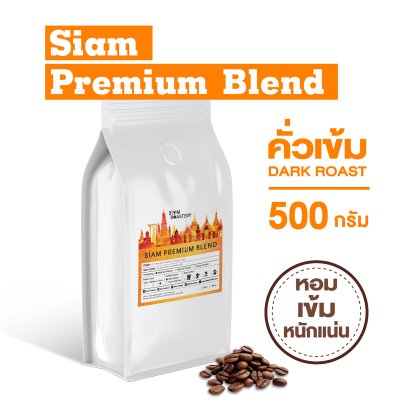 เมล็ดกาแฟคั่ว สยามพรีเมียมเบลนด์ จากสูตรการเบลนด์ ของเมล็ดกาแฟอราบิก้า และเมล็ดกาแฟโรบัสต้า จาก 2 แหล่ง ผ่านการคั่วระดับเข้ม ทำให้ได้รสชาติที่หอม เข้ม หนักแน่น | สามารถชงได้ทุกเมนู ร้อน เย็น ปั่น เหมาะอย่างยิ่งสำหรับร้านกาแฟ